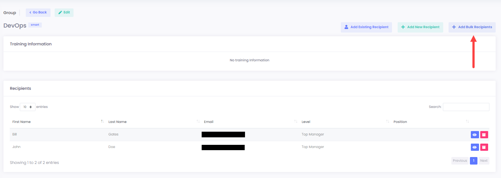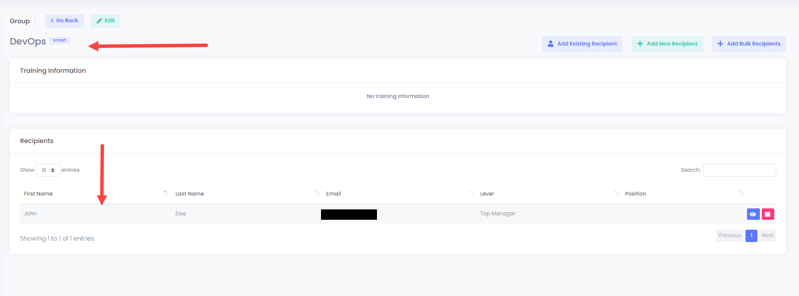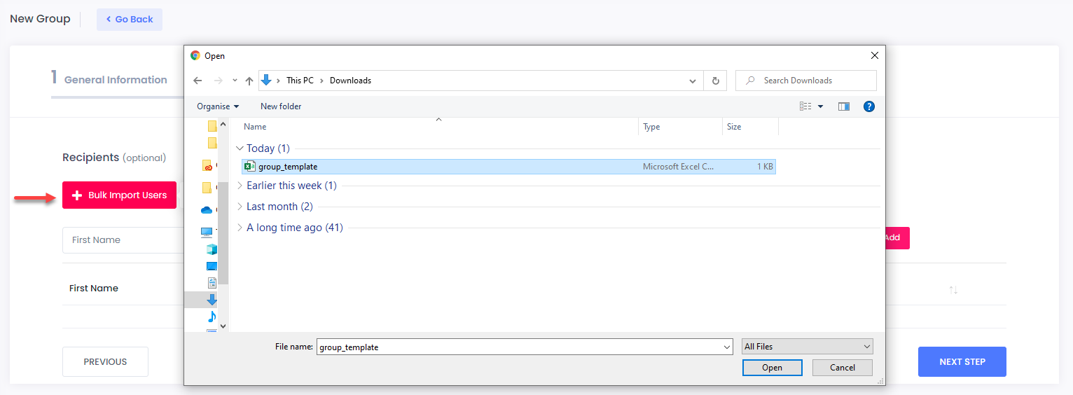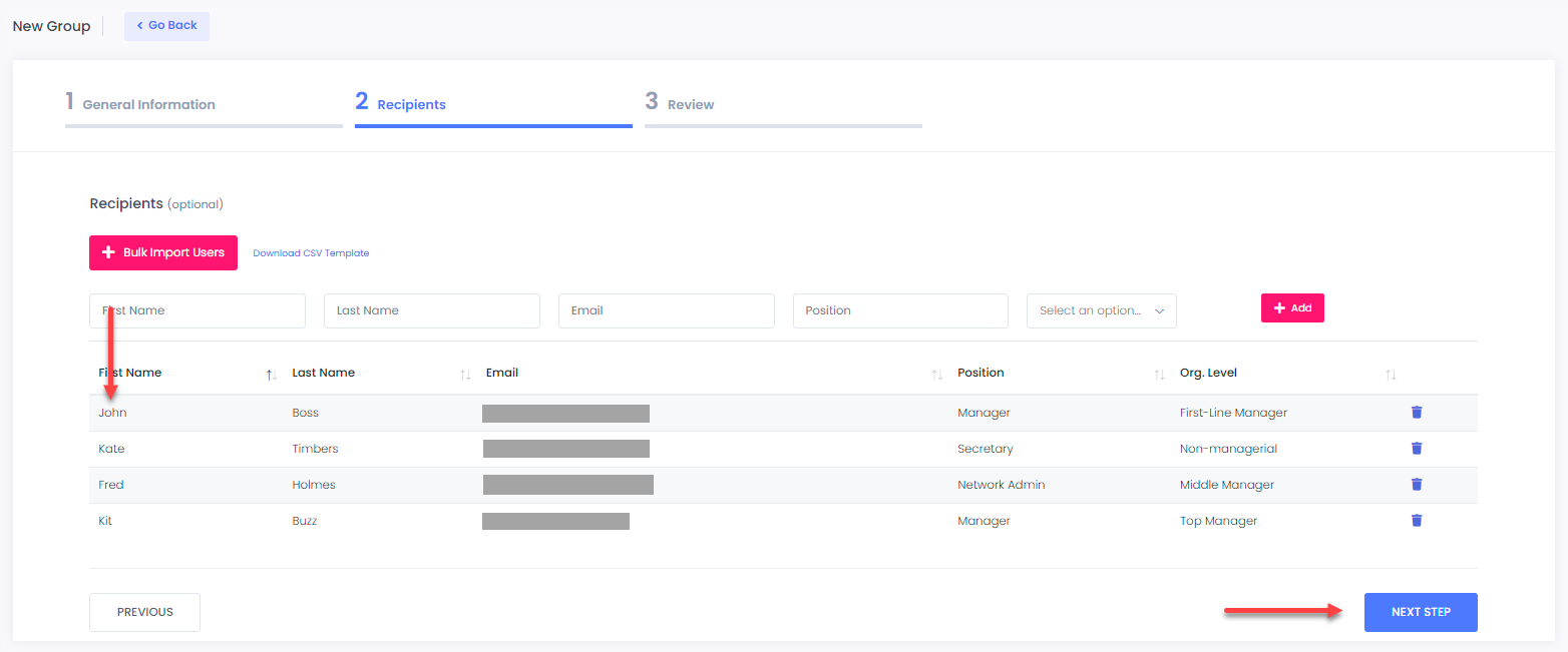 In case that you haven’t entered any recipients during the **Recipients** phase, this will create an **empty** group. You may use this method when creating [Email Campaigns](https://docs.cyberawaresecurity.com/admin-portal/email-campaigns).