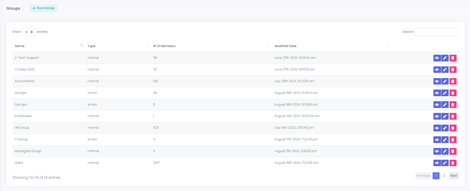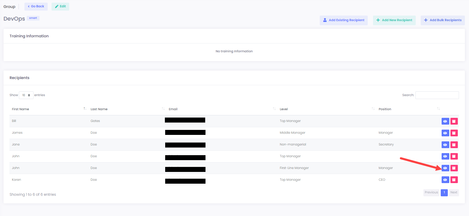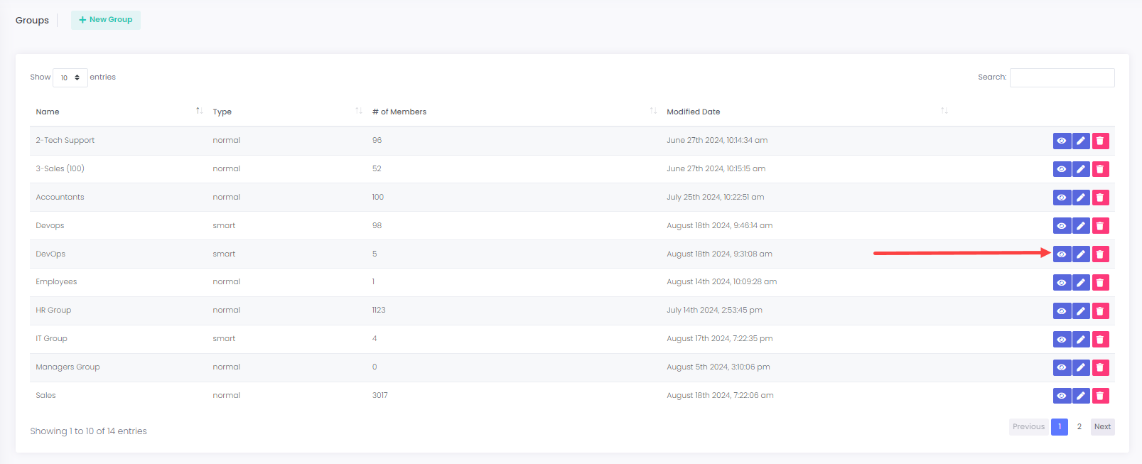 **27.** To view the user of a group, click on the **eye** button next to the record details:
