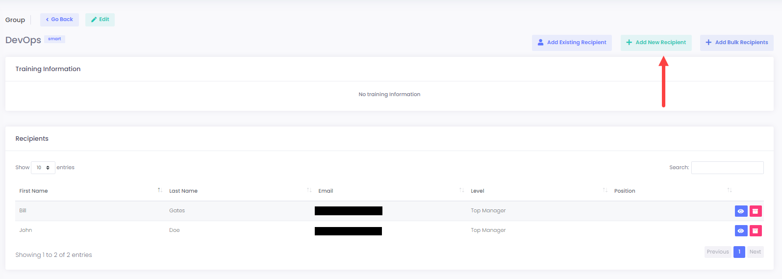**23.** Moreover, you can add a new recipient in the group through the **Add New Recipient** button: