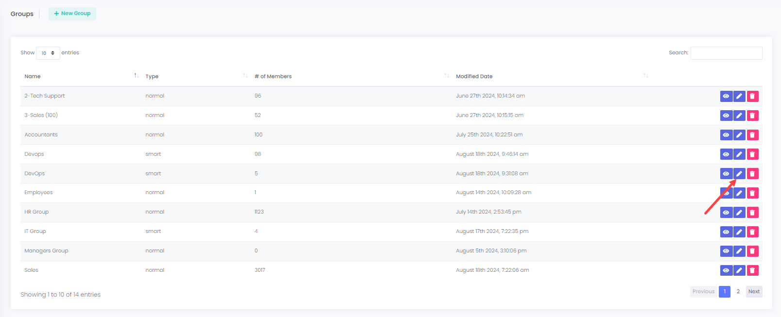 **33.** Alternatively, to **edit** the group itself, click on the **pencil** symbol: