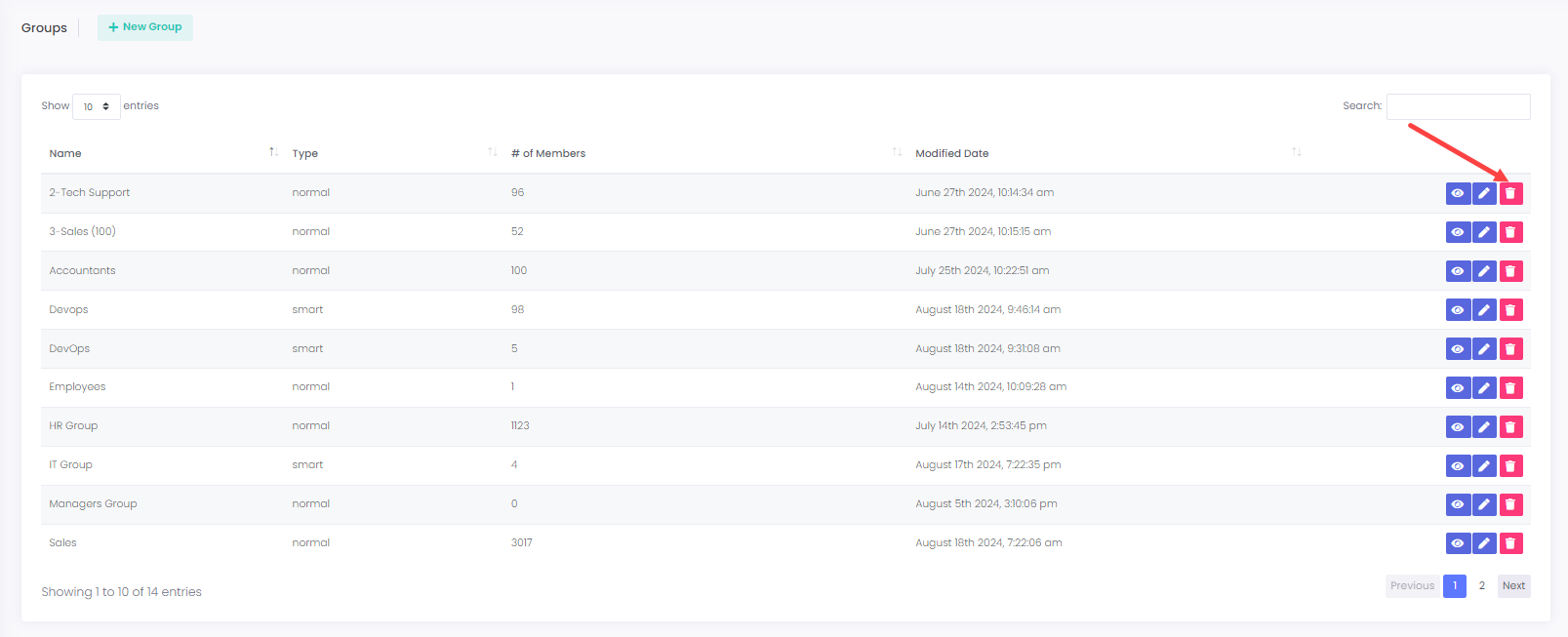 **28.** In case you wish to **delete** a user from a group, click on the **trash can** button.