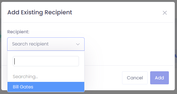 **21.** Pick the recipient of your choice and click **Add** to confirm, or **Cancel** to negate the procedure:
