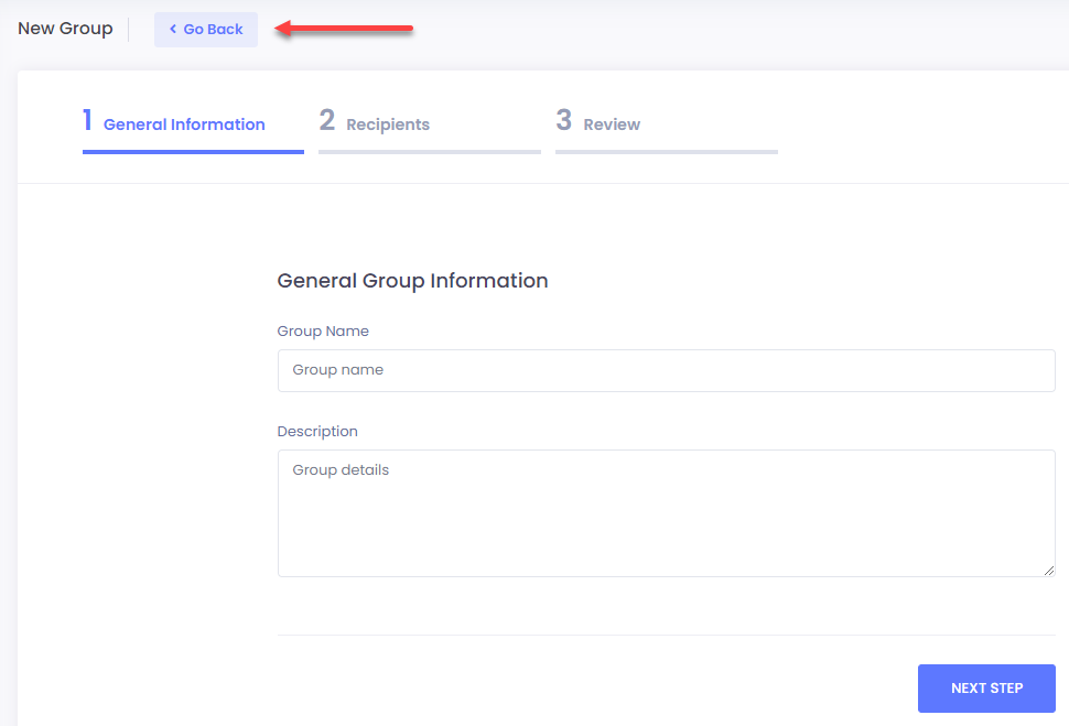 **1.** To create a new group for recipients, click on the **New Group** button.